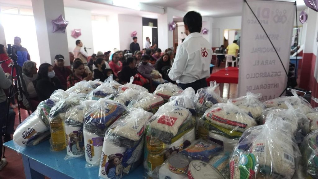 El evento se llevó a cabo en las instalaciones del DIF Municipal, donde decenas de familias recibieron apoyos alimentarios, así como sillas de ruedas y bastones destinados a personas con discapacidad.