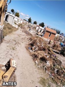 Cuadrillas de Servicios Públicos Municipales, bajo la coordinación de su director, José Luis Barranco Solís, trabajan en el retiro de maleza, poda de árboles, recolección de basura, barrido de pasillos y reparación de áreas comunes, con el objetivo de mantener los cementerios en condiciones seguras, limpias y dignas para las familias que en los próximos días acudirán a visitar a sus seres queridos.