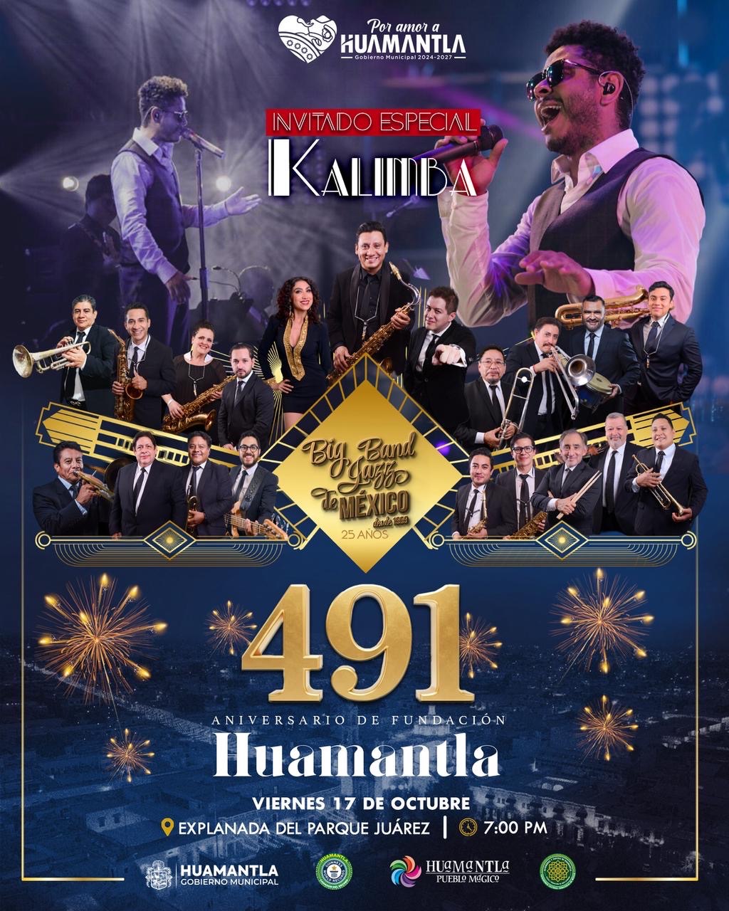 🎶 Como evento especial, el viernes 17 de octubre, Huamantla vivirá una noche inolvidable con la presentación de la Big Band Jazz de México, una de las agrupaciones más reconocidas del país, que llegará acompañada del talentoso cantante Kalimba, quien será el invitado especial de esta gran celebración musical.