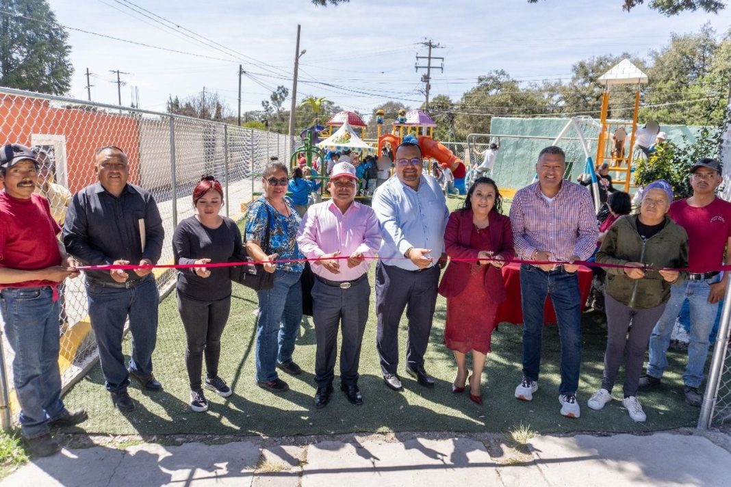 Asimismo, destacó que como parte de este esfuerzo integral por mejorar Guadalupe Texcalac, y gracias a una gestión del presidente de comunidad de 180 mil pesos, se rehabilitó y remodeló el parque comunitario, que ahora cuenta con nuevos juegos infantiles, pintura, alfombra de seguridad y malla protectora, creando un espacio digno y seguro para la convivencia familiar.