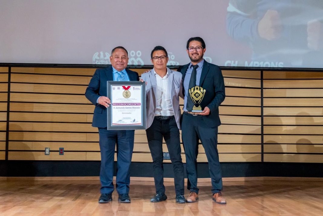 Javier Rivera Bonilla Edil de Apizaco entrega premio municipal del deporte.