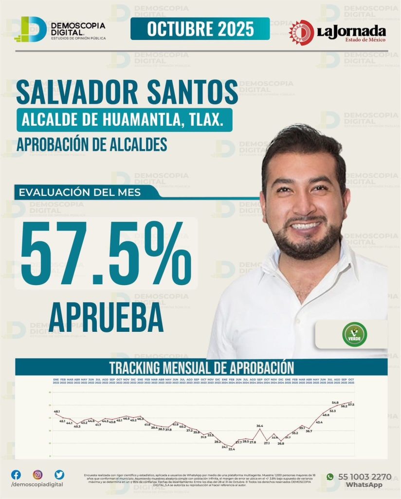 La coincidencia entre ambas mediciones, tanto a nivel estatal como nacional, confirma que los buenos gobiernos son respaldados por la ciudadanía y que el liderazgo de Salvador Santos Cedillo se sostiene en hechos, cercanía y resultados. Su administración ha impulsado acciones permanentes en materia de obra pública, seguridad, servicios y desarrollo social, fortaleciendo la confianza de las y los huamantlecos.