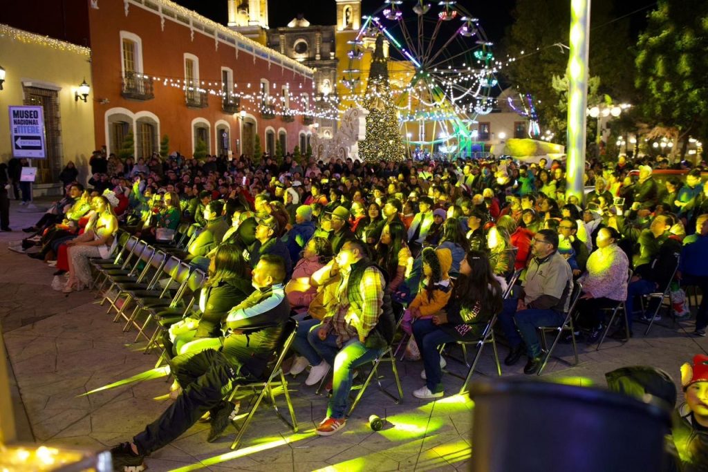 La jornada comenzó con la presentación del nacimiento instalado por la Fundación “Te Soñé” frente a Casa Huamantla, donde el Coro de Niños Cantores de San Luis Obispo deleitó al público con emotivos villancicos.
