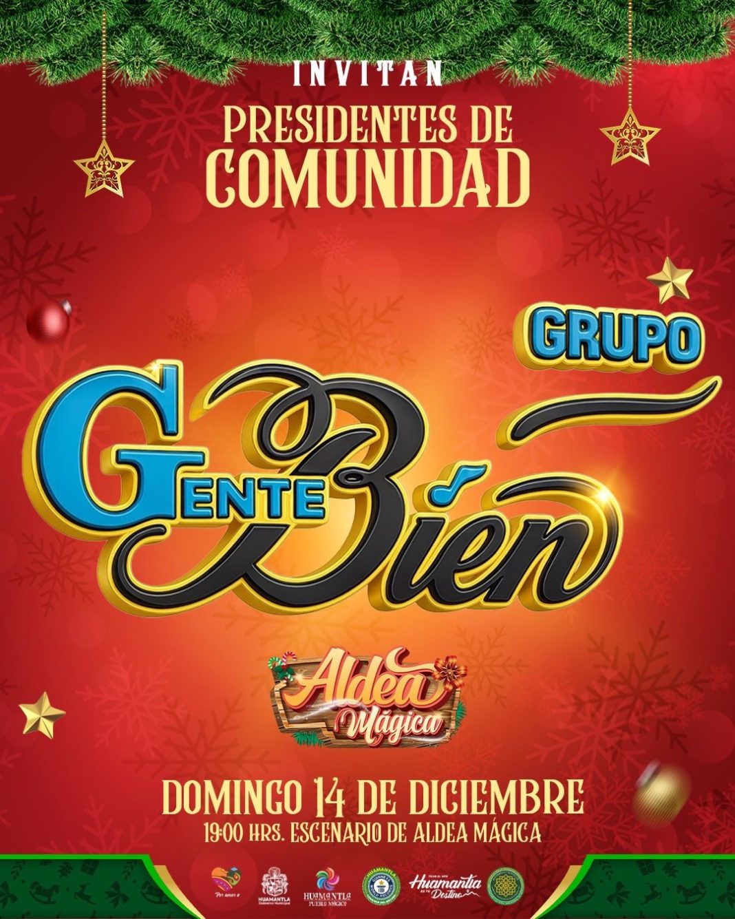 El Gobierno Municipal de Huamantla invita a la ciudadanía a disfrutar esta noche de la presentación musical del grupo Gente Bien, como parte de la tradicional posada decembrina, que se llevará a cabo en el escenario principal de la Aldea Mágica.