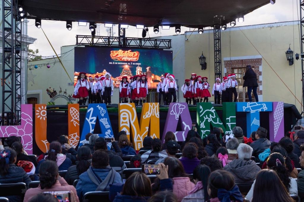 Con la participación de alumnas y alumnos de nivel preescolar y primaria, se llevó a cabo el evento “Cantos y Villancicos Navideños”, una actividad que llenó de alegría y tradición a la Aldea Mágica, deleitando a familias huamantlecas y visitantes.