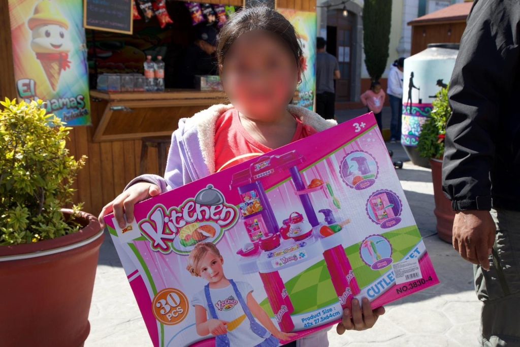 Como parte de la celebración, las y los asistentes fueron invitados a estar atentos, ya que dentro de la rosca se encontraban muñequitos especiales de color dorado, los cuales pudieron ser intercambiados por grandes regalos sorpresa, preparados con especial cariño por el Gobierno Municipal. Gracias a esta dinámica, niñas y niños recibieron obsequios como muñecas, patines, juegos de mesa y otros regalos, llenando de sonrisas el festejo.