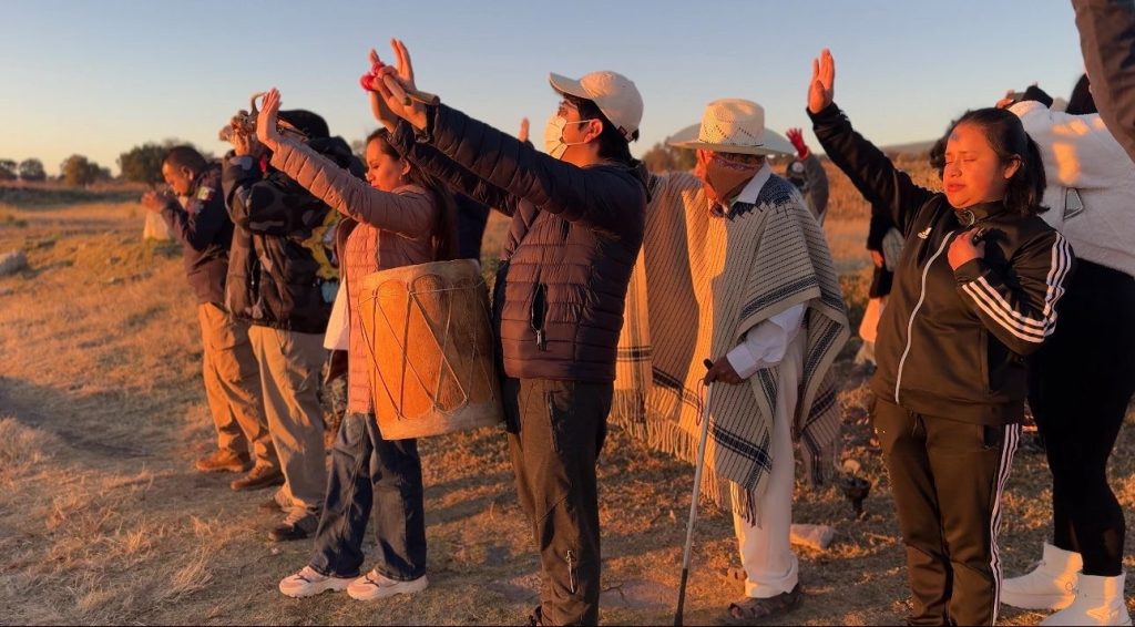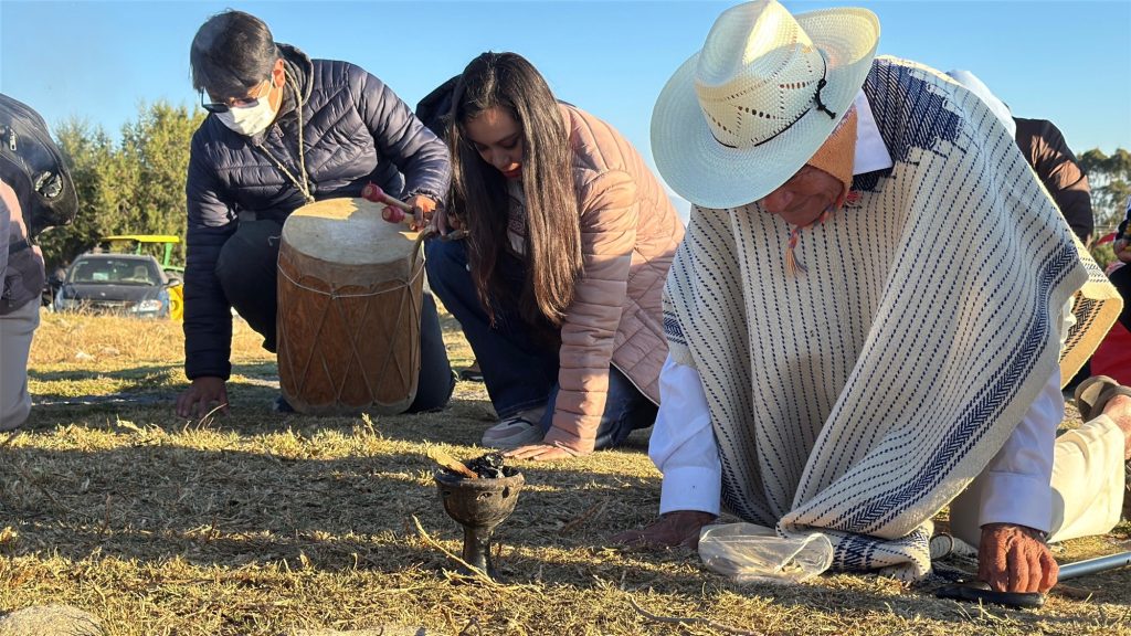 La jornada inició desde el amanecer con un ritual ancestral en La Era, sitio ceremonial de profundo significado para la comunidad otomí. Ciudadanos y autoridades acudieron a este acto, guiado por el maestro Agustín Ranchero Márquez, cronista del municipio, quien condujo la ceremonia dedicada al Tata Hyadi, el “Abuelo Sol” o “Padre Sol” en la tradición otomí. Durante el ritual se pidió permiso al señor Sol para iniciar un nuevo ciclo y se agradeció por un año más de vida, unión e identidad para Ixtenco.