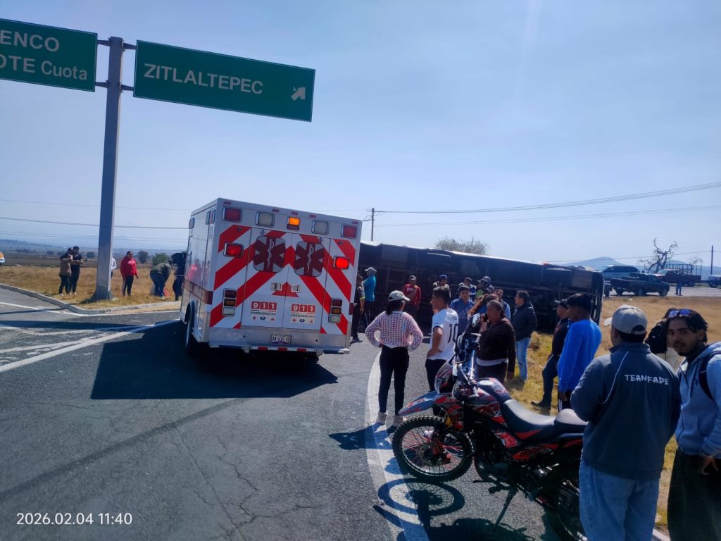 Se reportan cuatro personas lesionadas de gravedad, quienes fueron estabilizadas en el lugar y posteriormente trasladadas a nosocomios de la zona para su atención médica especializada. Asimismo, varios pasajeros presentaron crisis nerviosa y fueron valorados por los cuerpos de auxilio.