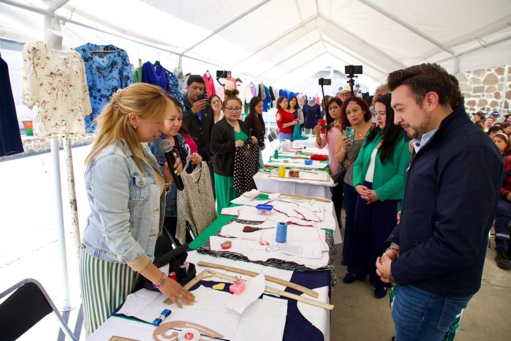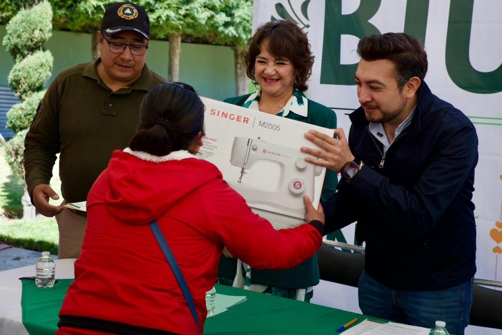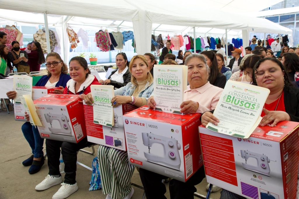 La actividad inició con la clausura del curso de corte y confección de blusas, impulsado por el Sistema Municipal DIF, donde más de 90 mujeres concluyeron un proceso de formación orientado al autoempleo. Como parte de este respaldo, las beneficiarias recibieron una máquina de coser, herramienta que contribuirá directamente al fortalecimiento de la economía familiar.