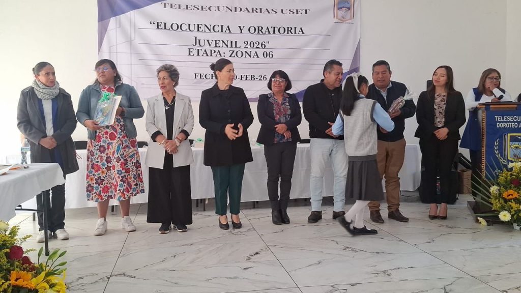 Huamantla, Tlaxcala.- Con el objetivo de fortalecer las habilidades de expresión oral, el pensamiento crítico y la participación académica y cultural de las y los estudiantes, se llevó a cabo el Concurso de Elocuencia y Oratoria Juvenil 2026 de la Zona 06 de Telesecundarias USET, organizado por la Telesecundaria Doroteo Arango de la colonia Francisco Villa.