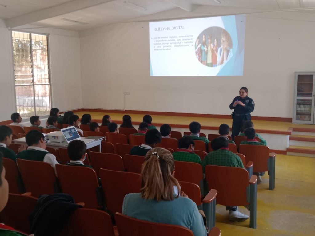 Durante la jornada de este jueves 19 de marzo, elementos del área de Proximidad Social impartieron pláticas a estudiantes de la Escuela Secundaria “Moisés Sáenz”, donde abordaron temas como el ciberbullying y la prevención del consumo de sustancias nocivas para la salud. Estas acciones estuvieron dirigidas a alumnos de primer y tercer grado, fomentando la toma de decisiones responsables y el autocuidado.
