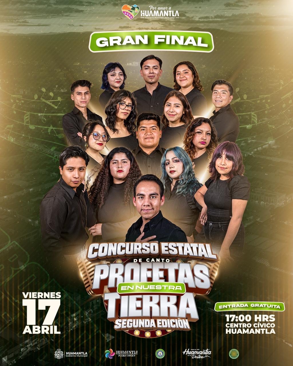 El Gobierno Municipal de Huamantla celebrará la gran final del concurso de canto “Profetas en Nuestra Tierra”, una iniciativa impulsada por la administración municipal que, en esta edición, abrió su convocatoria a nivel estatal para reunir a las mejores voces de Tlaxcala.